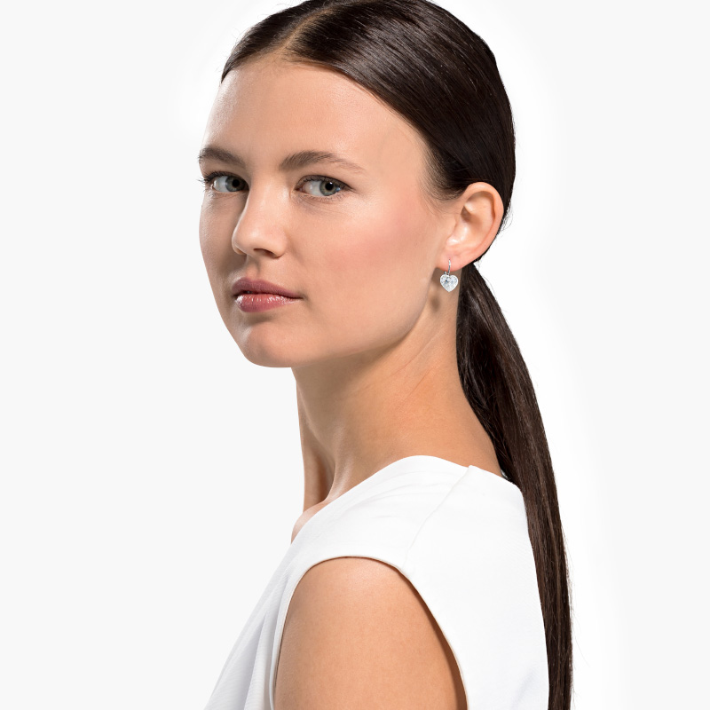 Hoa tai Swarovski chính hãng Bella drop earrings, Heart, White, Rhodium plated 5687414 mang thiết kế sang trọng. Chất liệu cao cấp pha lê Swarovski®, mạ Rhodium lấp lánh, sáng bóng thu hút mọi ánh nhìn.